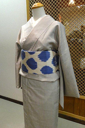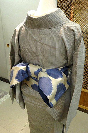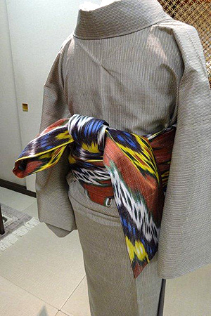 絣模様でカラフルな色が入った半巾帯は、存在感があって大人な帯です。