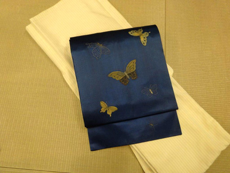 ブルー繻子蝶々刺繍名古屋帯 32400円