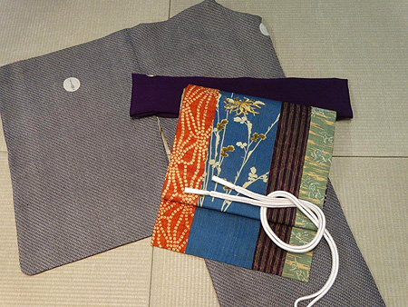写真の帯は古い生地と江戸裂を合わせた華やかな帯ですが、ほかにもヨーロッパ更紗を帯に仕立てた可愛いものやインド更紗、黄八、唐桟などの縞をはいだものなどなど。