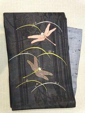 古代のトンボのように、大きく悠久の時の流れを感じさせる刺繍です。