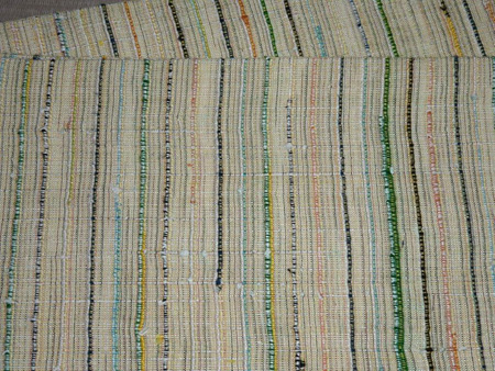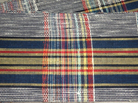 細糸の地に繋ぎ糸の技法(糸を途中で別の色糸につなぎかえる技法)で横糸に鮮やかな糸を織り込んでいます。