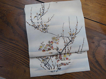 まだ、風は冷たい早春の気配。それを伝えるような風情の、素晴らしい帯です。
