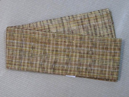 インテリアファブリックを半幅に帯に仕立てています。太糸と細糸の変化が楽しい帯です。