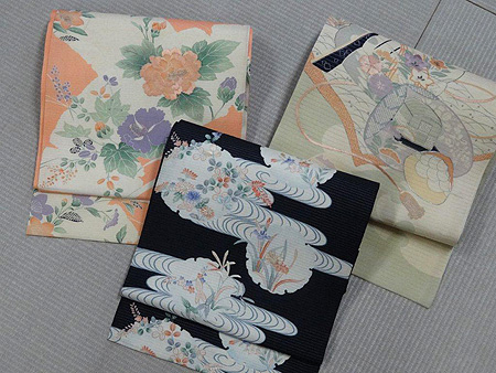 牡丹に秋草の図染帯 21,600円 (写真左)