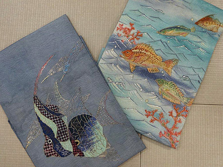 幸せエンジェルたちの名古屋帯と魚たちの海中散歩名古屋帯上写真左: