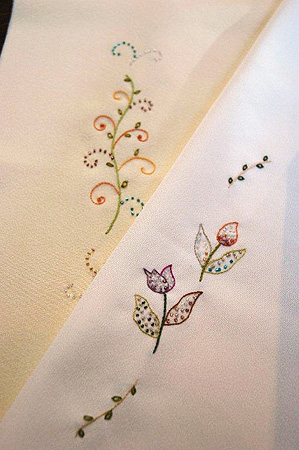 各刺繍にビーズをあしらい、1枚はチューリップ柄になっています。