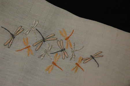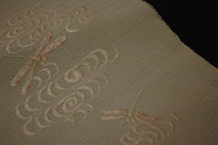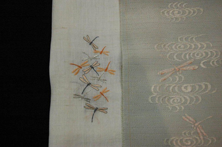 トンボ|半衿 コメントを残す 日本の秋の赤トンボ。 秋茜、夏茜と呼ばれる種類も多く、 その時季、色による和名の響きに情緒があります。 雌は黄褐色。 赤いのはふつう雄だけで、山頂にて盛夏を過ごし8月にはいり気温が低下してくるとともに、体も赤色になり低地に移動するそうです。 これから秋になりますよという、季節の案内役のよう。 絽縮緬はもちろん単衣にあわせていただけますが、単衣頃はまだ残暑も厳しいので麻衿もおすすめです。 トンボ柄絽縮緬刺繍半衿(右) 9,800円 トンボ柄麻刺繍半衿(左) 12,600円 斉藤