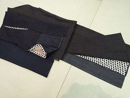一つはカラフルなブルーと紫の水玉、涼しげな紬の袖の振りや裾から覗くと素敵ですね。