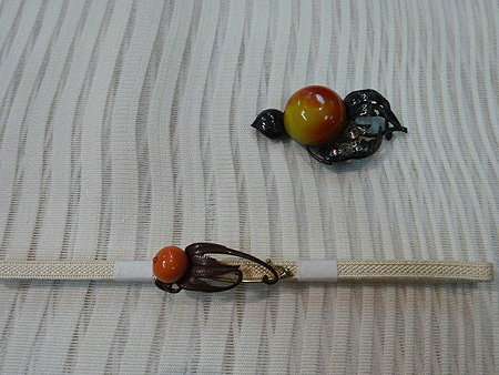 なかでも可愛らしいホオズキの帯留を2点ご紹介します。