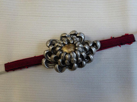 秋の帯留 銀座の中央通りのウインドウもすっかり秋の装いです。 お店の帯や着物の図柄も萩や葡萄、菊に変わってきています。 日本の装いは季節と共にあるんだなぁとつくづく感じさせられます。 半衿や帯揚げ、帯留も秋のものをご用意しています。 べっ甲やつげ、彫金など帯留は新しいものがたくさん入っていますので、ぜひお店で合わせてみて下さい。 左から 大輪の菊と小菊白珊瑚帯留 32400円 葡萄べっ甲にらでん細工帯留 29400円 大輪の菊帯留 16200円 田中