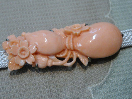 桜珊瑚帯留桜珊瑚帯留ご紹介の帯留は、珊瑚の枝から彫りだされた満開の桜。
