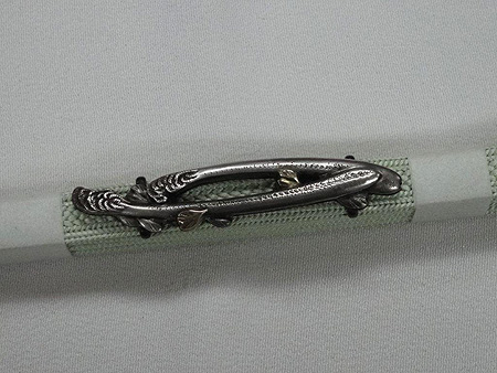 帯留としては珍しく、こちら帯留はこの季節ならではの桜の花びらを絡ませた雅な蕨です。