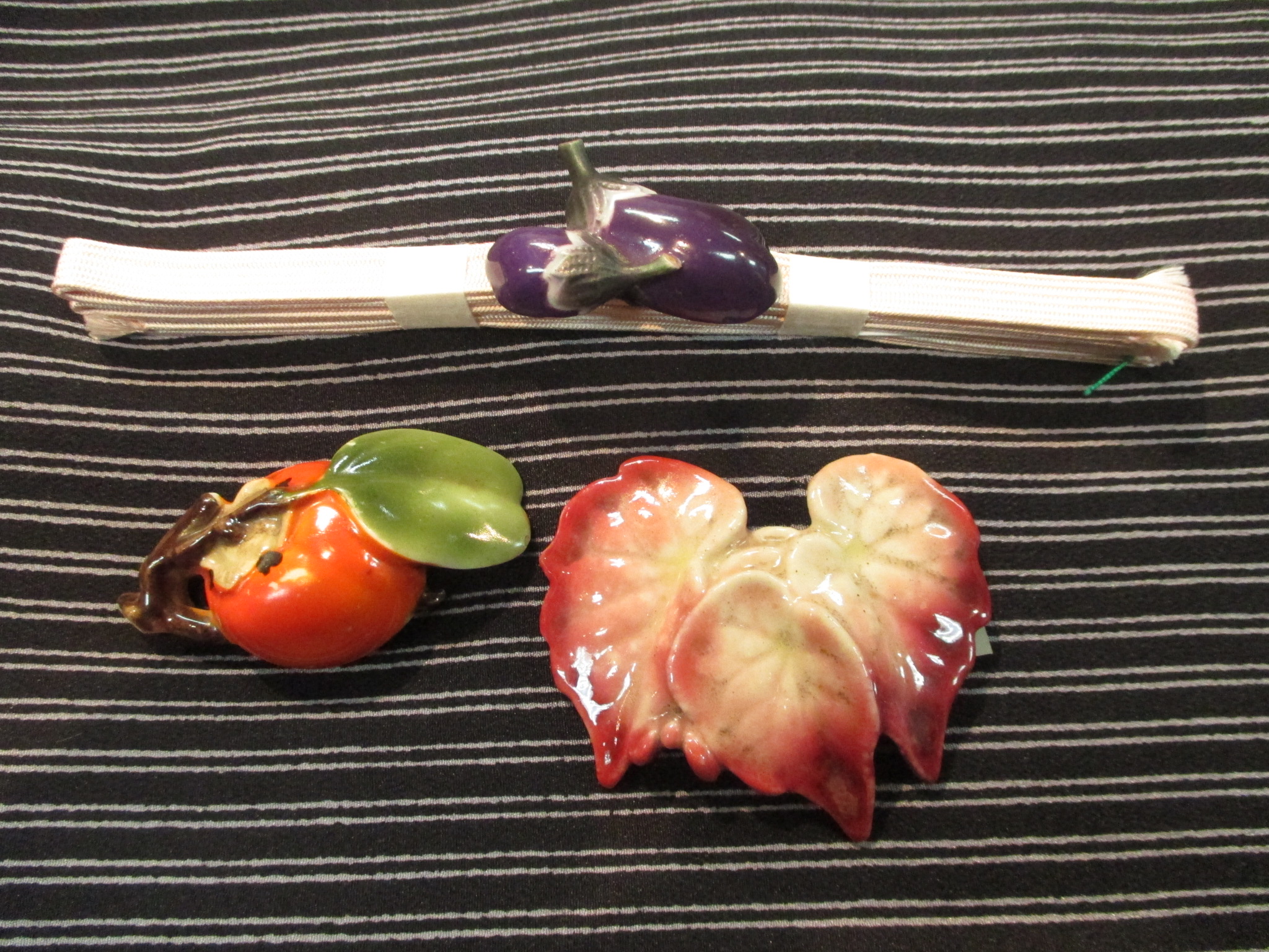 甘さが伝わってくるような柿、みずみずしさにはち切れそうな茄子、たわわな実を想像させる色づいた葉。