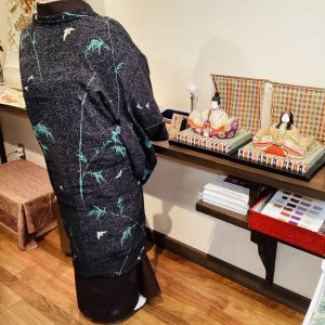 そして渋めのユキヤナギの帯ですが、お太鼓には鳥が