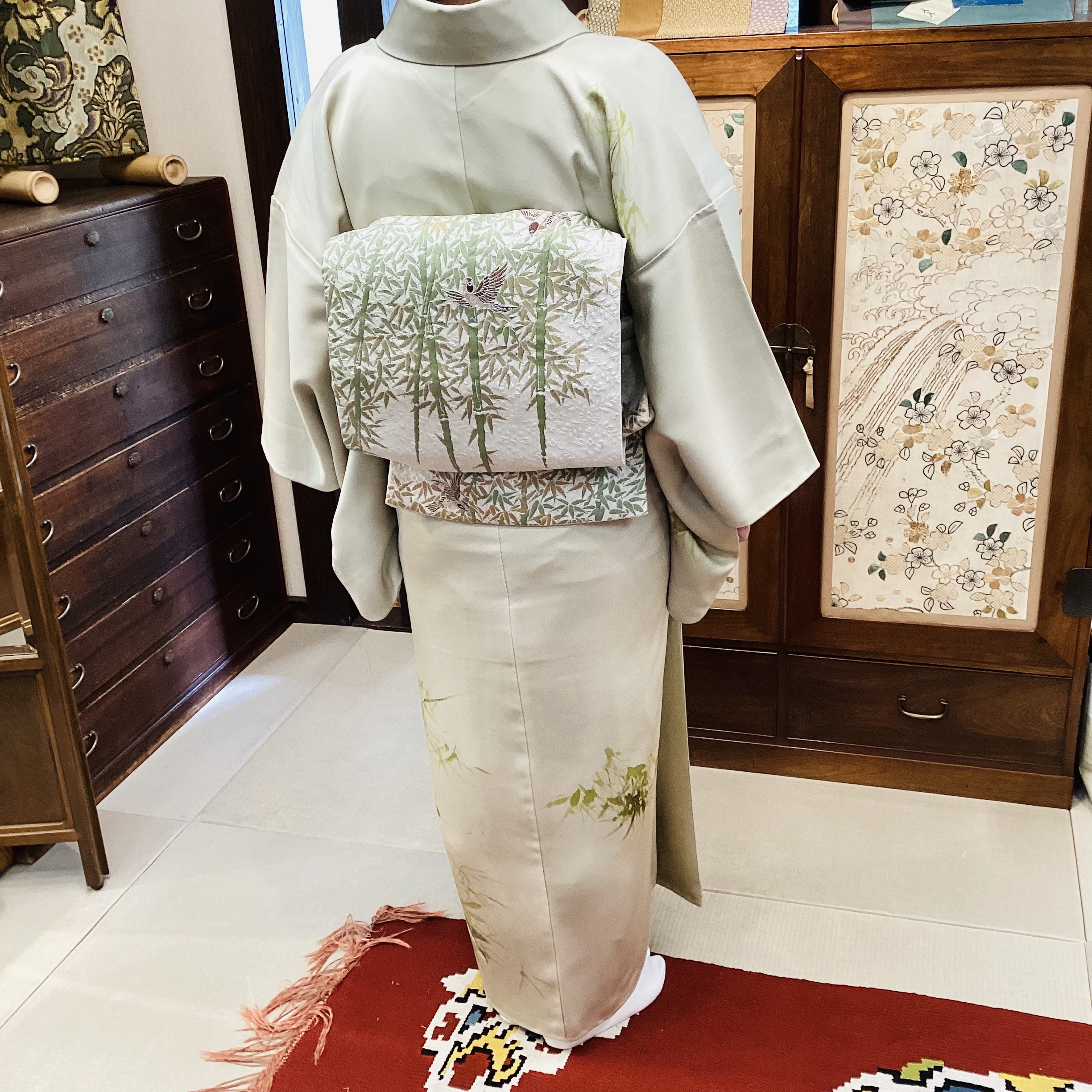 ご一緒に卒業式に参列されたお母様は、雀と竹が描かれた色留袖でご登場。お手持ちの織りの雀と竹の帯を締めて、ずくしスタイルが大人可愛いい装いです。