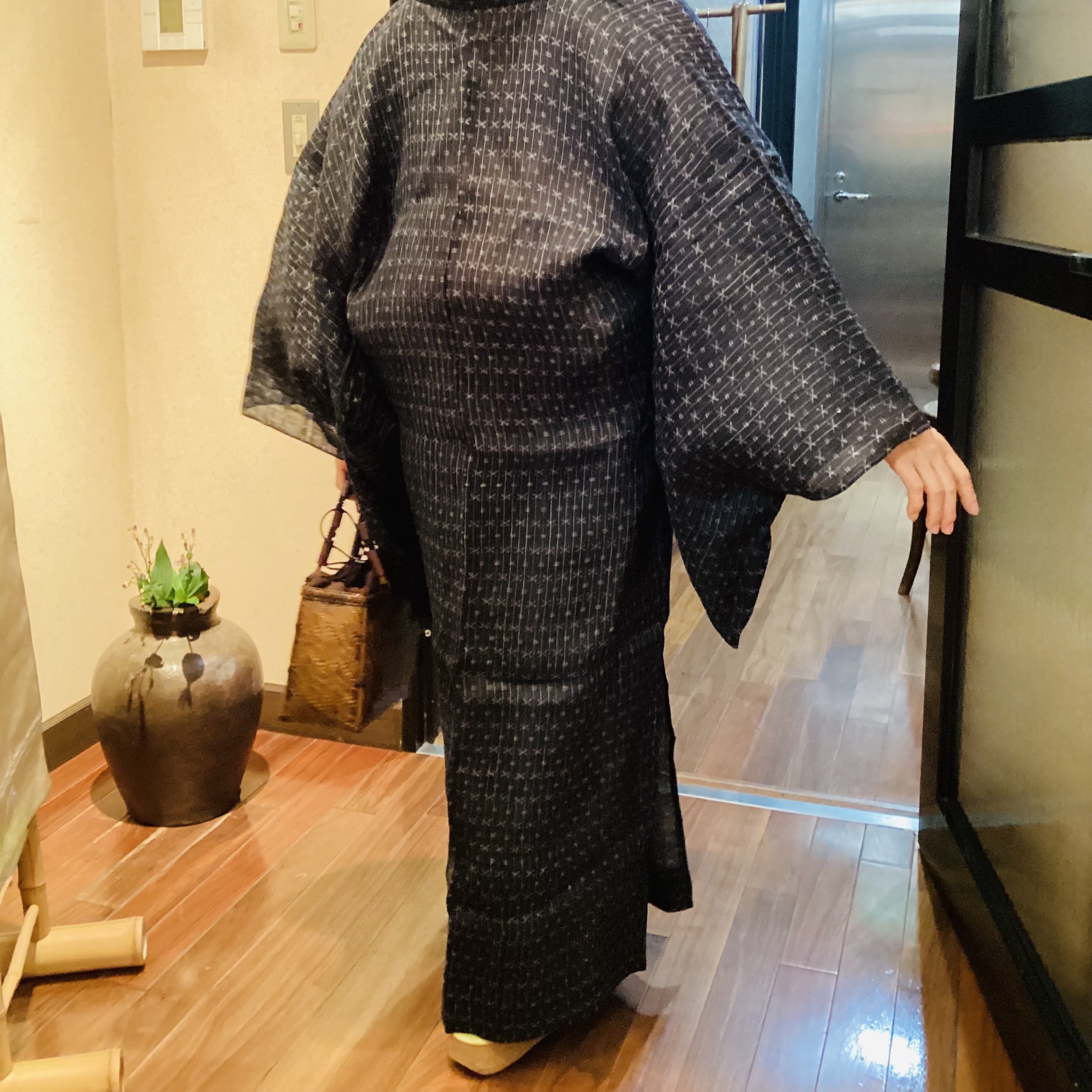 本日は灯屋2おすすめ、上布や小千谷縮のちりよけコートでお出かけのお客様のご紹介です。