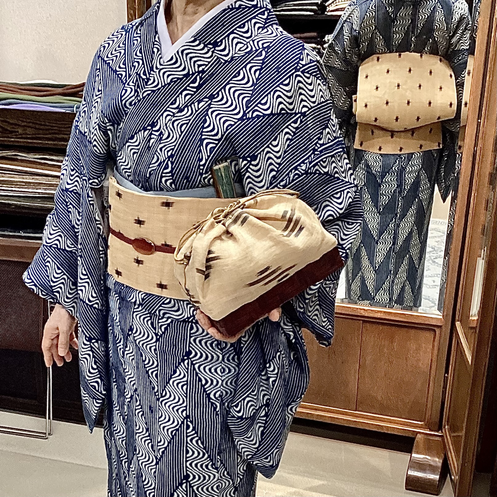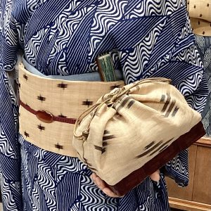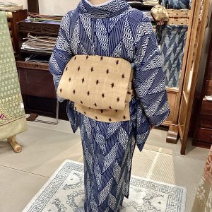 本日は正藍冷染の大麻の着物に、芭蕉布の帯でお出かけいただいたお客様のご紹介です。