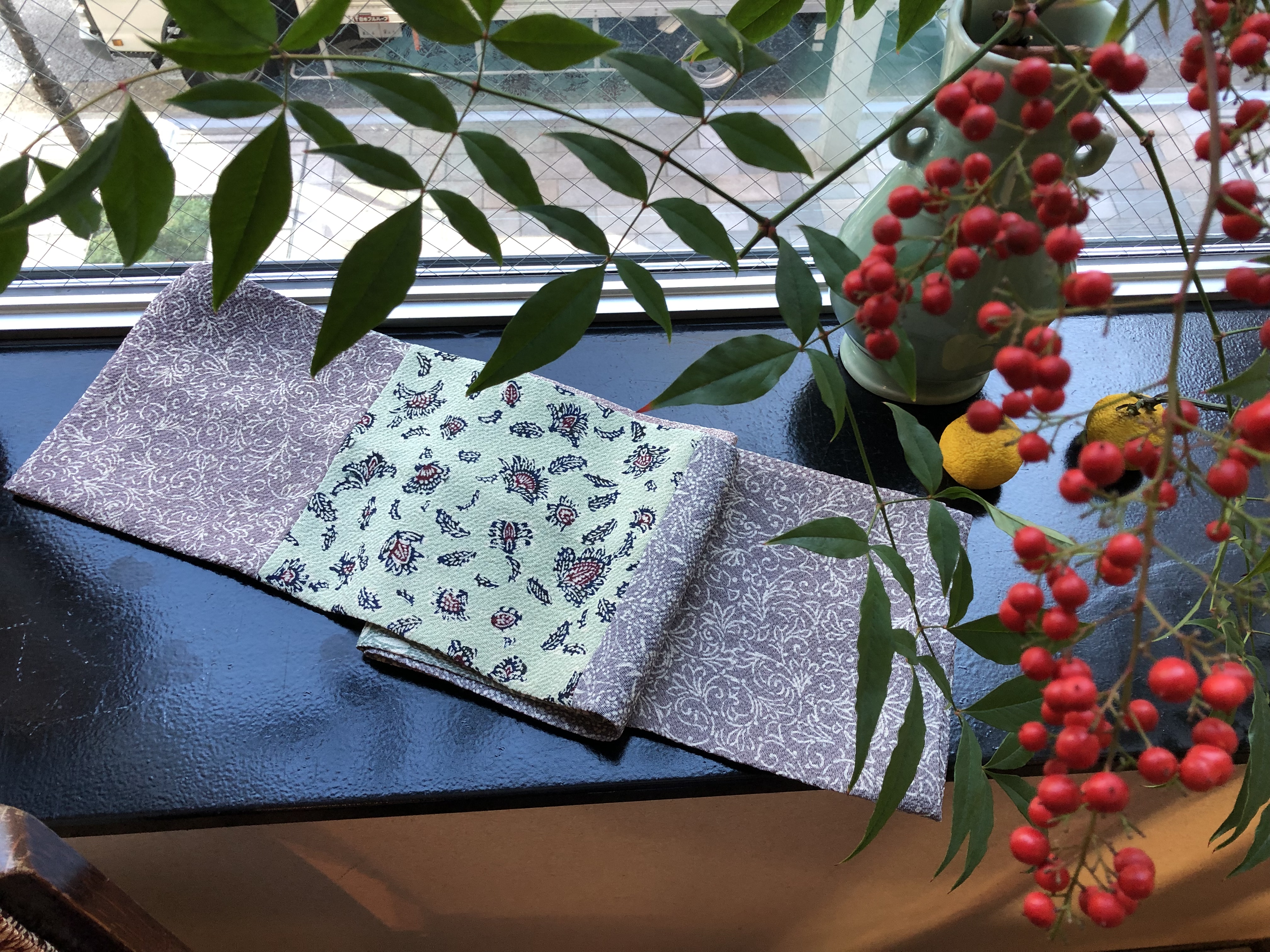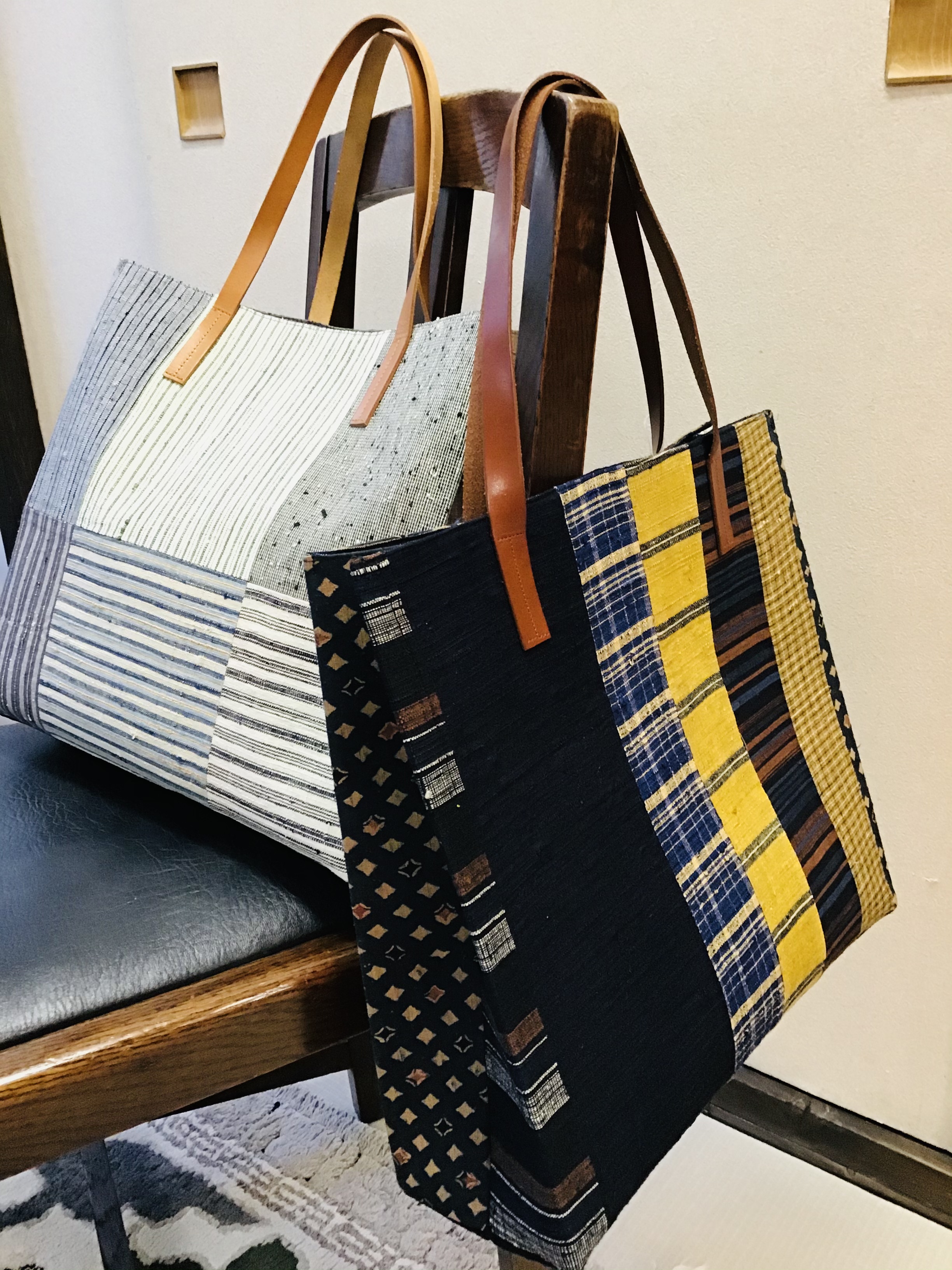 男性にもおすすめ!浦野継ぎ裂小物 お洒落紳士のお供に如何でしょう? トートバッグはどちらも、ノート型パソコンが余裕で入ります。 肩にも掛けられるサイズ。 継ぎ裂トートバッグ 右(大) 税込26,400円 左(中) 税込19,800円 マフラーはまだまだ冷たい風の中、あたためてあげるのにふさわしい優しさ。 いったい何枚の布が使われているのでしょう! 継ぎ裂マフラー 税込33,000円 通人に是非ともお使いいただきたいのは、この数寄屋袋ですね。 継ぎ裂数寄屋袋 税込 17,600円 バレンタインも近くなりました。 ご自身のお好きなものを、愛するかたにプレゼントしてみませんか? こころをこめてお手伝いさせていただきます。