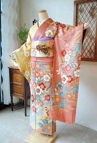 桜に流水文様振袖