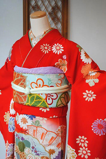 ほんのり朱色がかった赤色は、成人のお祝いに相応しく可憐で華やかな主役ならではの色合い。