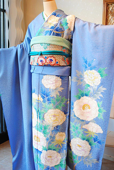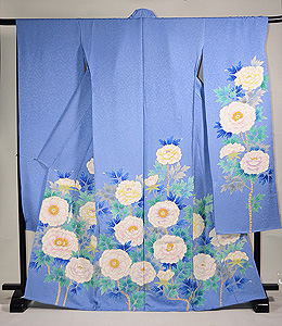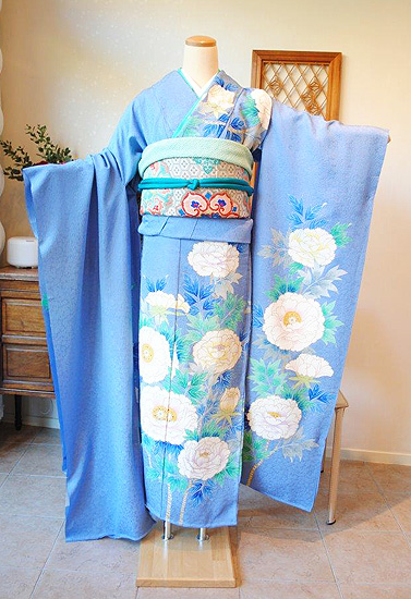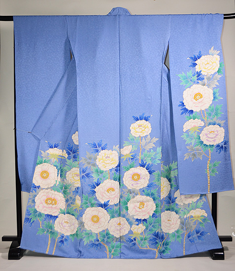 青地牡丹尽くし文様振袖