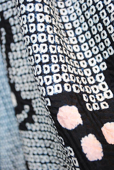 絞り染めのような疋田文様を用いることで立体感を出しています。