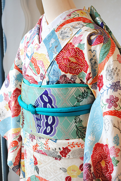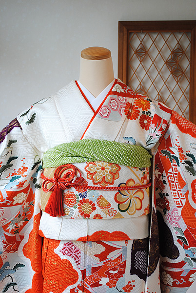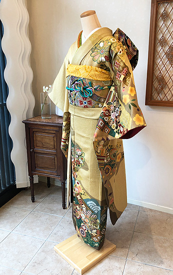 豪華な丸帯を合わせて結婚式や成人式の晴れ着としてお召しください。