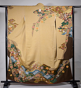 金駒刺繍や太めの絹糸を用いた手刺繍が多く取り入れられ、とても重厚で豪華な仕立てとなっています。