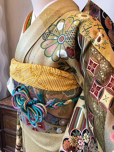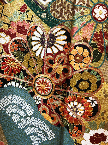 上前の菊花文様には金刺繍がほどこれされ、豪華な仕立てとなっています。