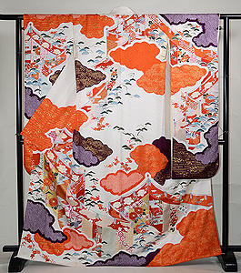 白雲取り古典文様白振袖