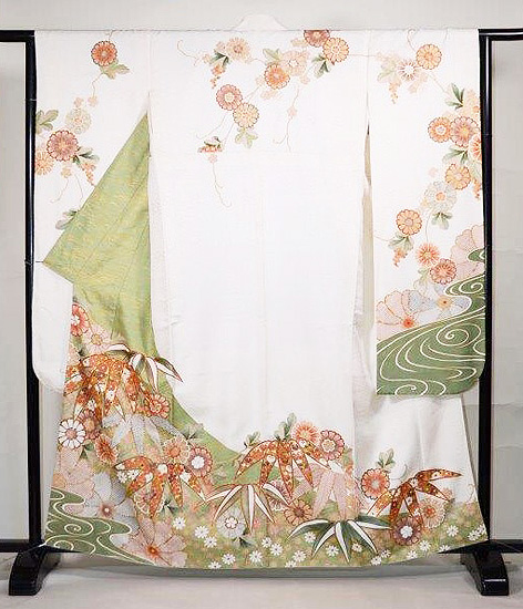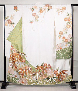 流水に菊竹文様振袖