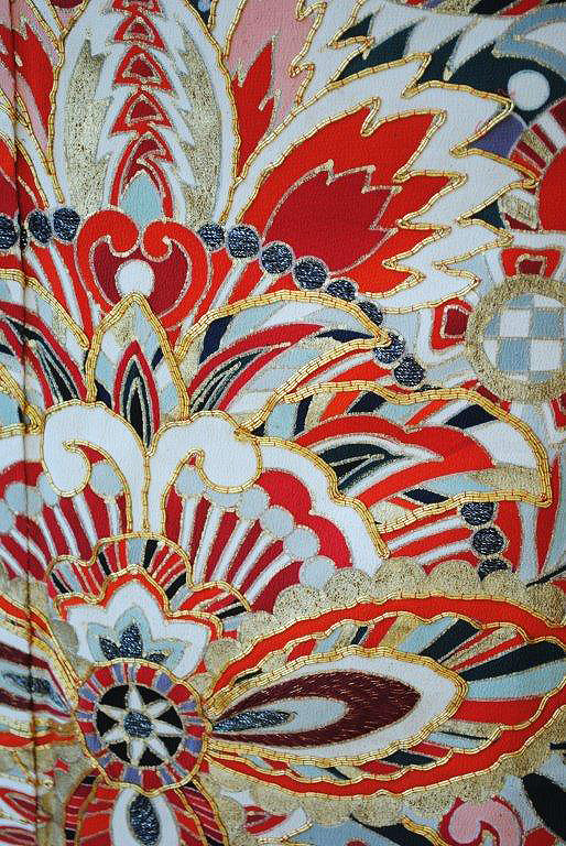 日の光はもちろん、スポットライトのような照明の中でも美しい輝きを放ち、その豪華な存在感は花嫁衣装や成人式など格調高い装いにぴったりです。