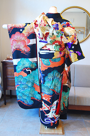 宝舟に松の図振袖