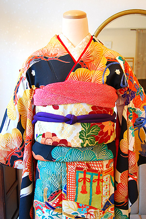 まさに成人式にお召しになるのに相応しい文様と言えます。