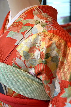 朱赤の発色も素晴らしく、成人式のお振袖としても若々しく華やかな印象で装っていただけそうです。