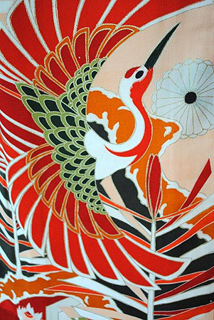 夫婦円満と長寿を意味し、黒振袖には良く登場する鶴。