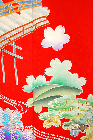 桜に藤、橋文様と古典文様を配した個性的な図案で、レトロな雰囲気が漂います。