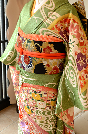 朱色や金地の帯を合わせ成人式など格式ある場での装いに正統派の礼装としてお召しください。