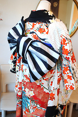 ストライプの帯を合わせて少しモダンな印象にコーディネートしました。