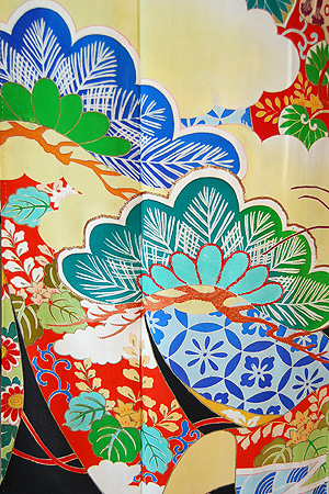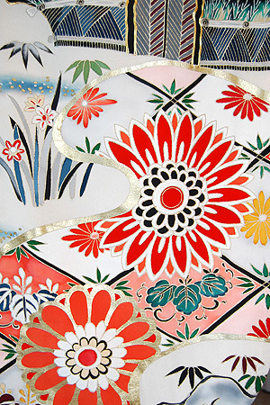 万寿菊をはじめとする様々な種類の菊は長寿の象徴として、お祝いの席にぴったりの文様です。