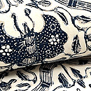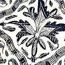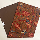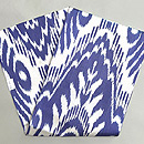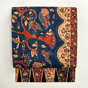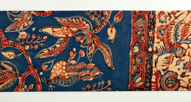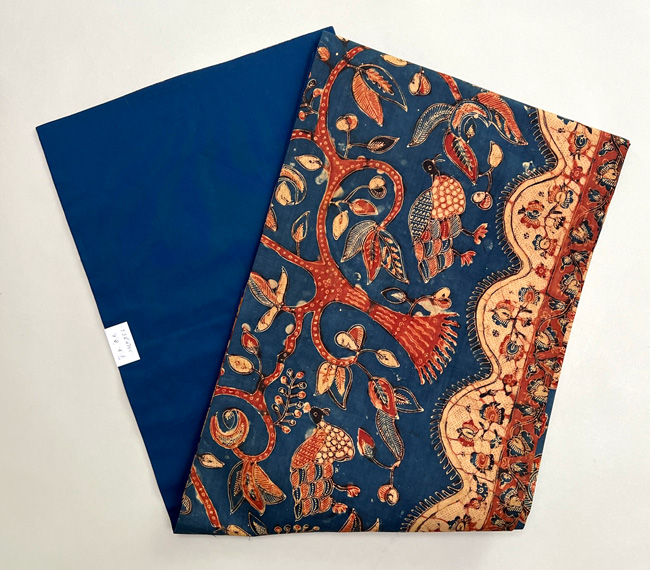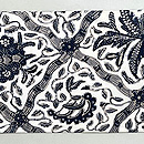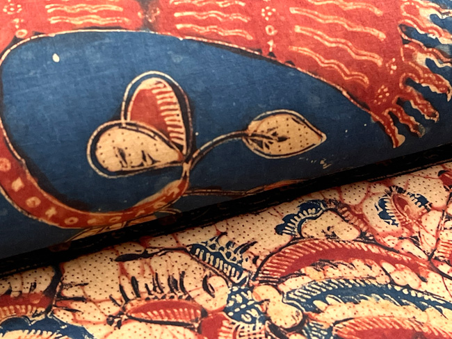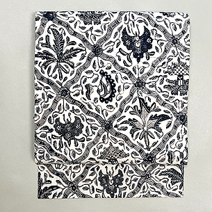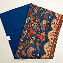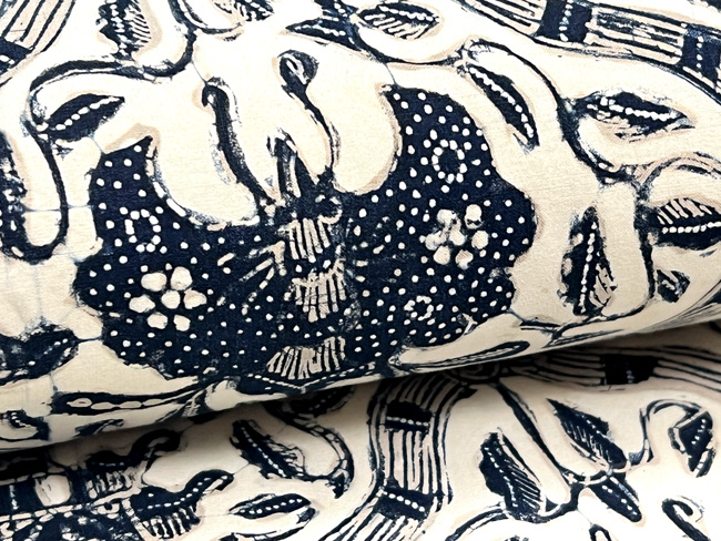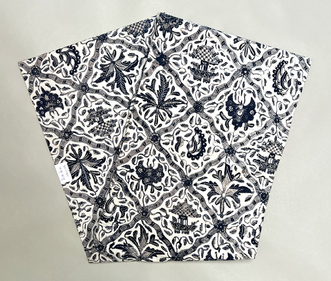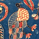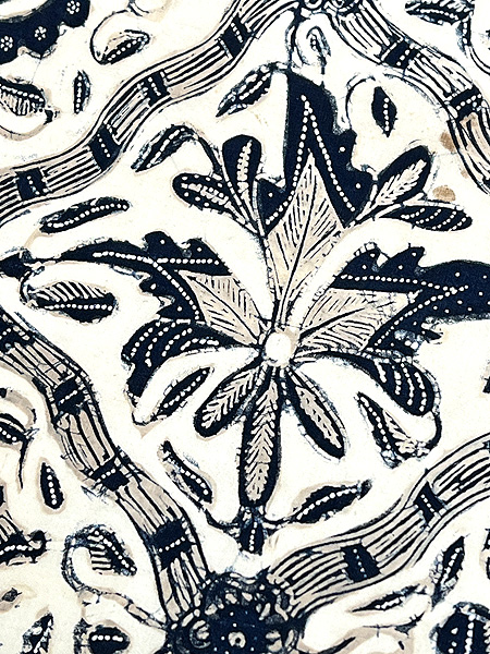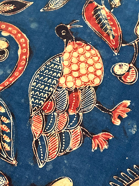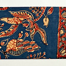 落ち着いた藍地に花や鳥を描いたインドネシアのロウケツ染。