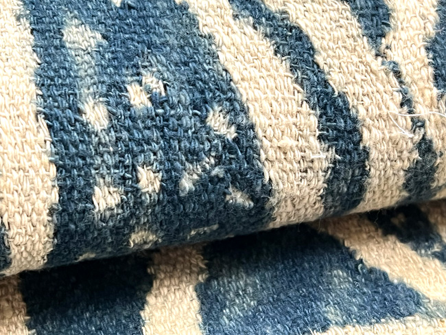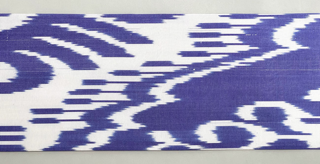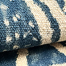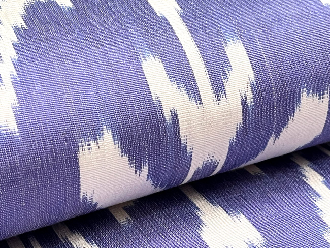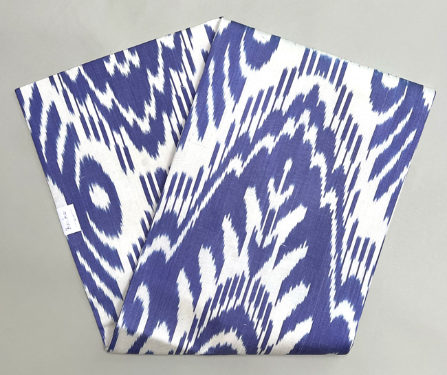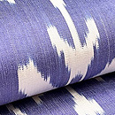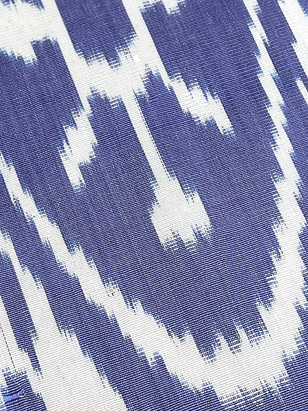 白地に明るいブルーの縞が斜めに入って、絣足がきれいに流れています。
