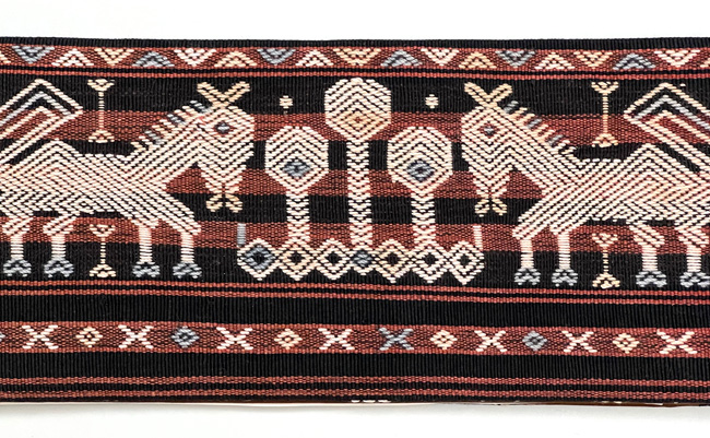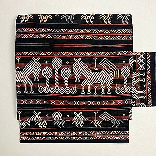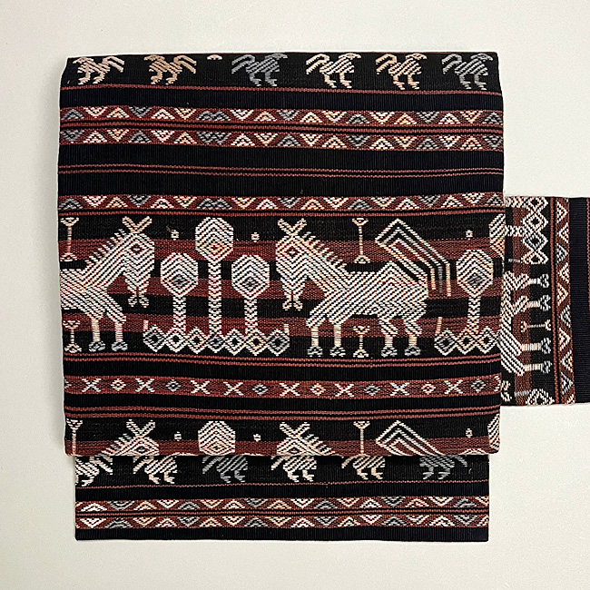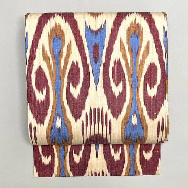 手紡ぎの木綿に唐草文様を染めたマドゥーラ島のバティックを名古屋帯に仕立てました。