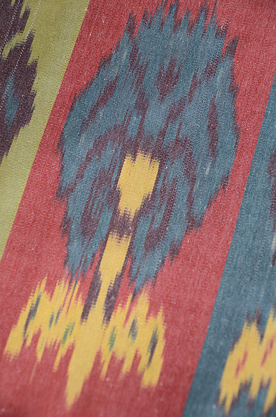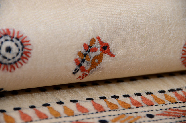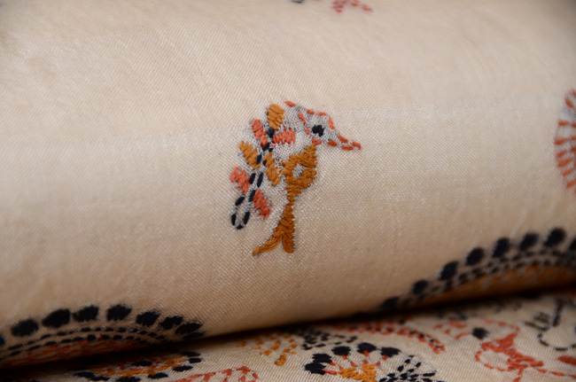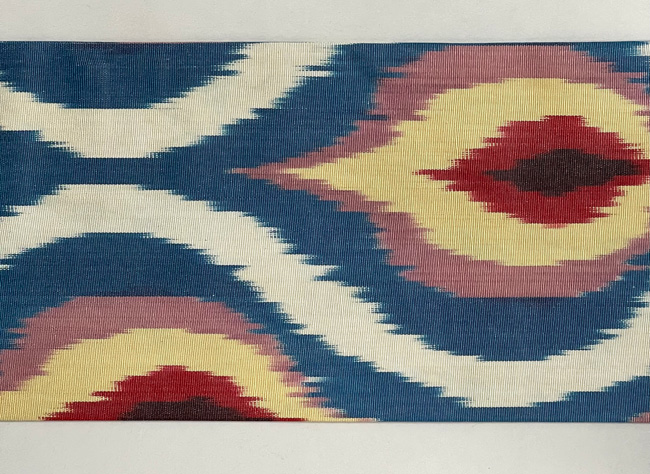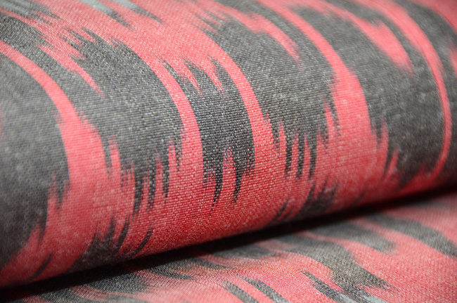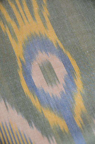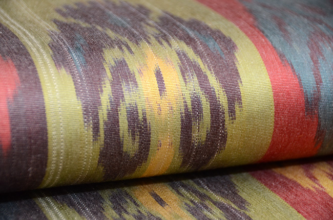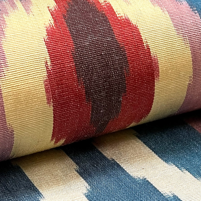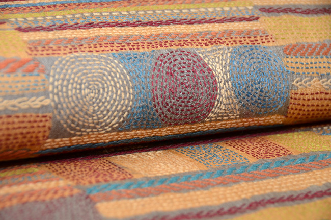 タッサーシルクの柔らかな糸で、リズミカル、モダンなデザインを織り出しています。