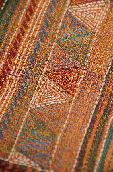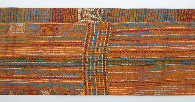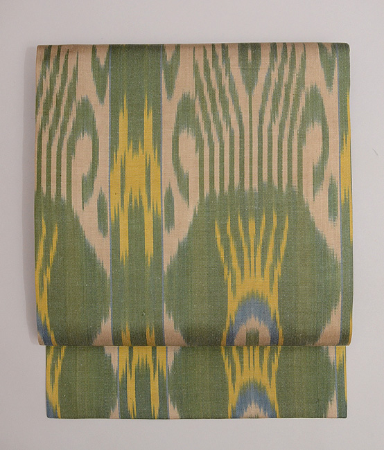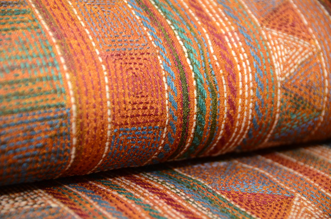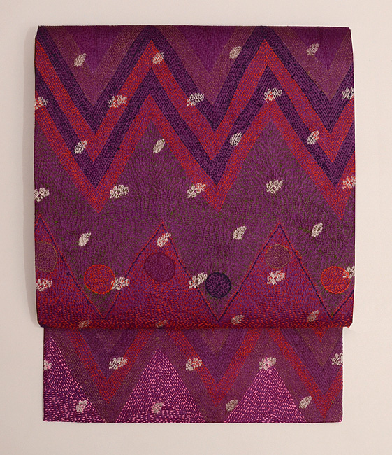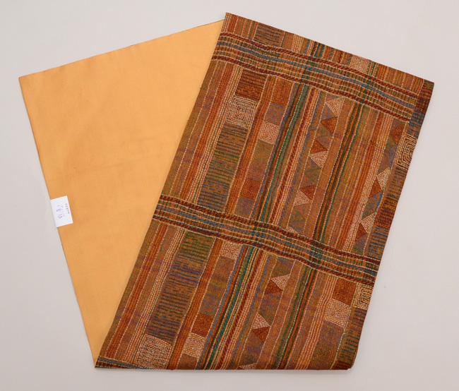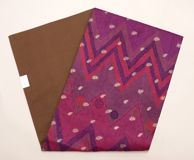 ショールとして使われていたのでしょうか、モコモコと豪奢な感覚がありましたが、灯屋2の技法でなるべく延ばして帯にと仕上げました。