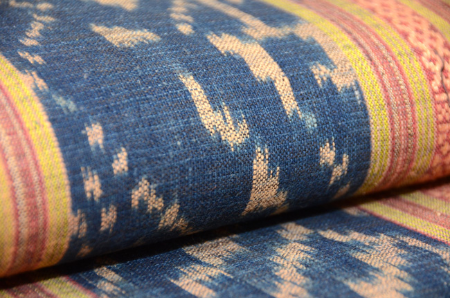 絣と縞の間に黄と藍が入ったオシャレなコンビネーションに、モダンな香りがしてきます。