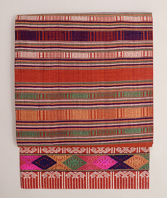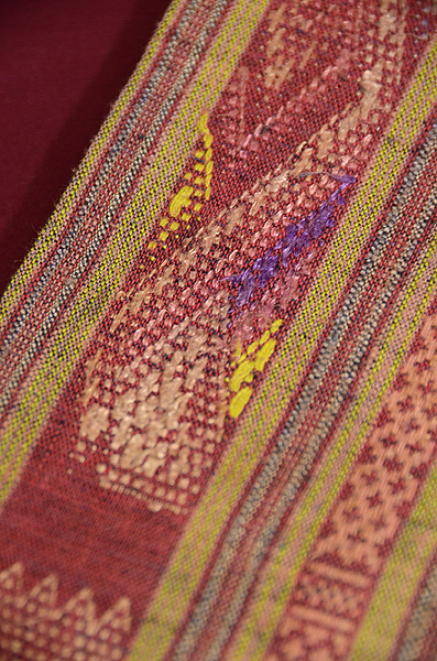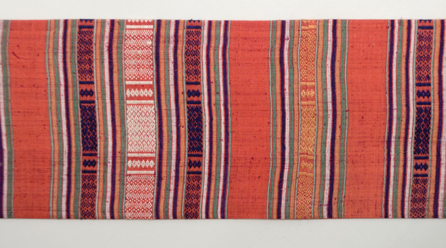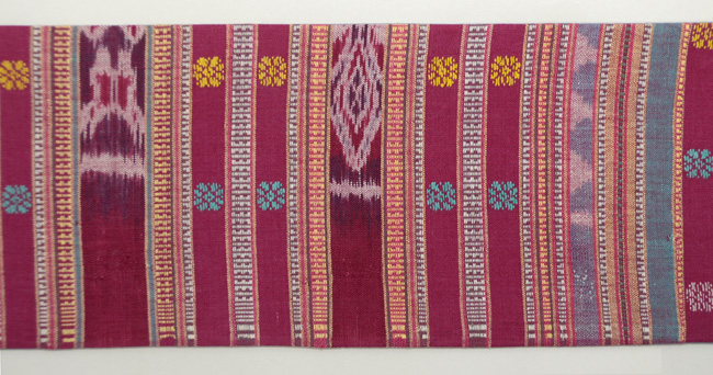 きれいな明るい茜色に目を奪われますが、ティモール島で、肩掛けとして作られたのでしょうか。