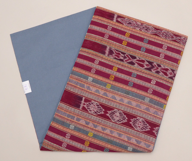 インドとは、早いうちから交易があり、パトラという絹絣からきた文様を、藍と蘇芳とでそめわけています。