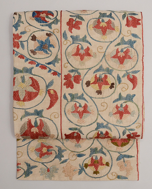 ウズベク スザニ花唐草文様名古屋帯
