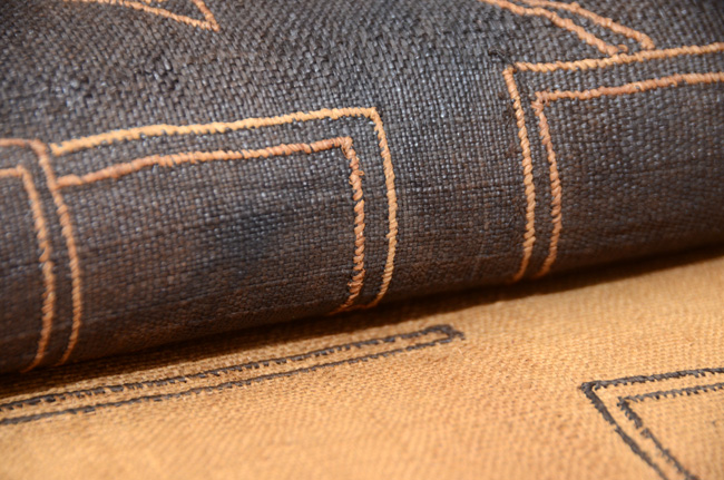 ラフィア椰子の繊維を織り込んで、カットベルベットにしたものです。